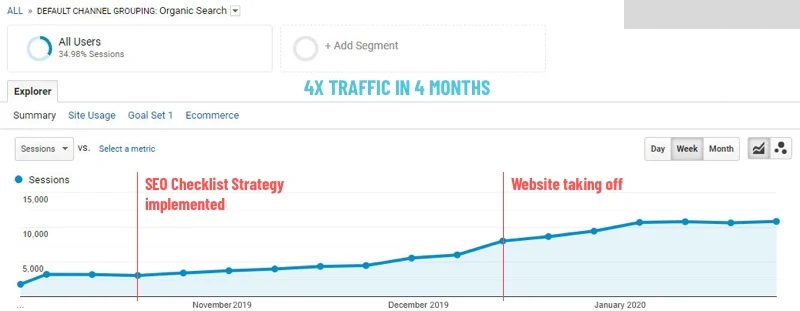 In just 4 months, Chirag took this website from 2,500 organic visitors per month to over 10,000 (4x growth in as many months).